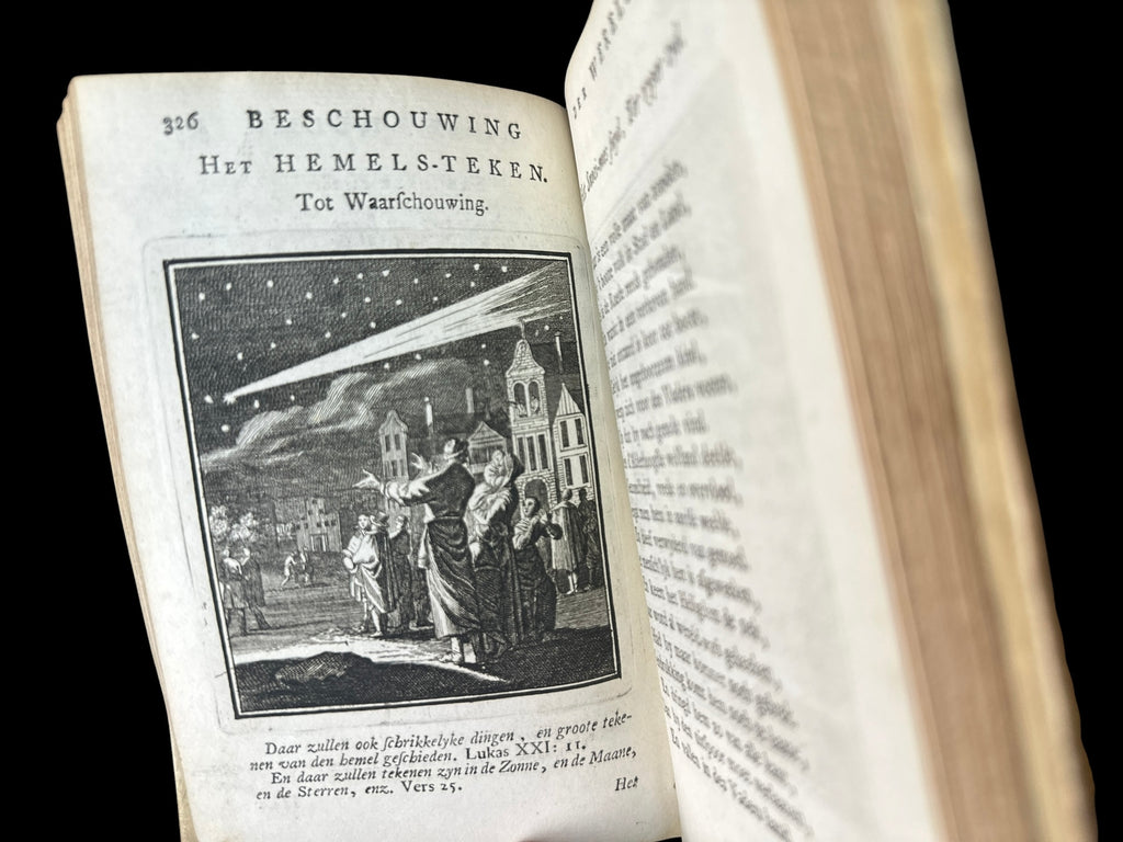[Emblem Book/Emblemata] Jan Luiken. Des menschen begin, midden en einde. Amsterdam: Erven F. Houttuyn, 1768. 18mo., (34), 103, (7) pages. Engraved frontispiece, title page with engraved vignette, portrait of the author, and 50 engraved copper emblems by Luyken. Bound in contemporary brown calf leather, spine with five raised bands and decorated with faded gilt fleurons.