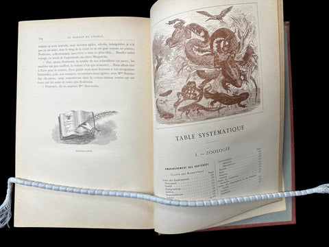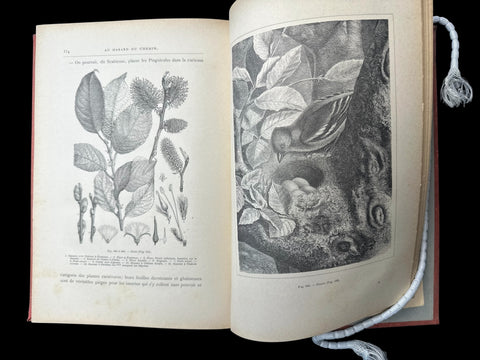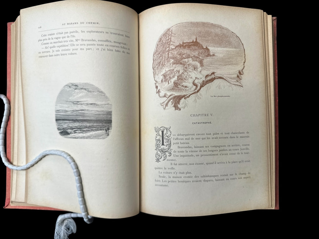 Meunier (Stanislas), M. et Mme. Au Hasard du Chemin. France: J. Rothschild, ND (c.1900). Bound in red cloth with gold gilt title on decorated spine, and gilt fore-edge; Large octavo, pp.384; Title page printed in red and black; 666 black and white illustrations, along with 20 full colour chromolithograph plates, hors-texte.