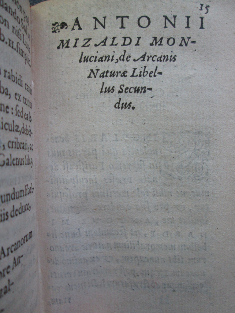 1558 De Arcanis Naturae by Mizauld 1st Ed
